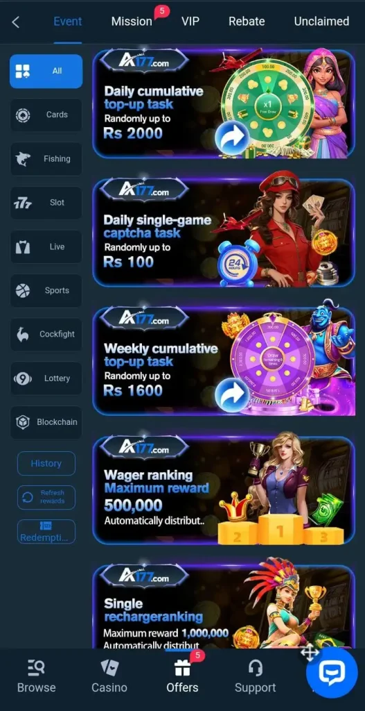Seasonal events, competitions, and lucky draw promotions provide exciting rewards and additional earning chances.
