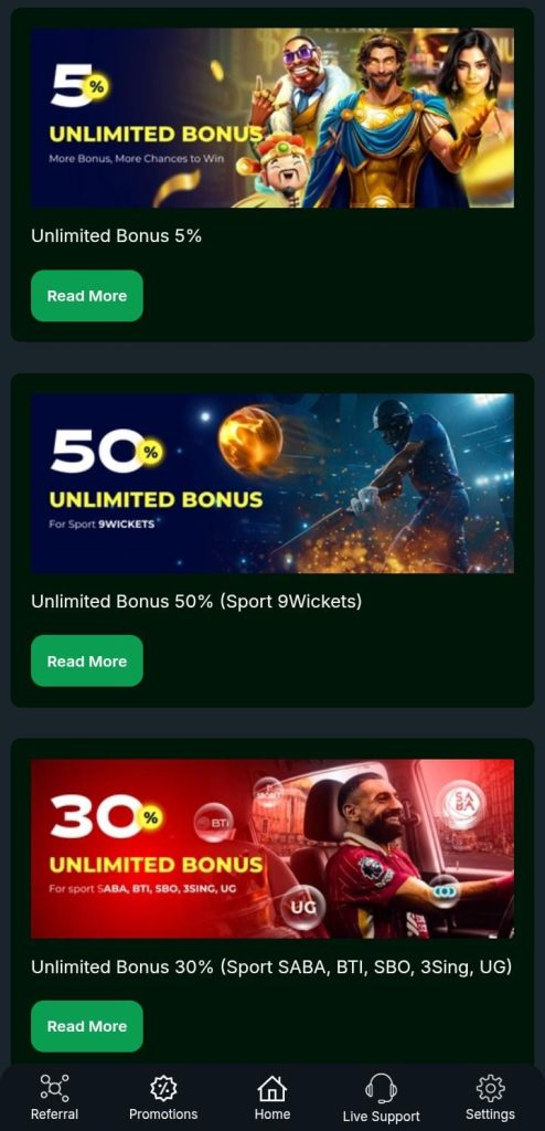 Players receive daily login bonuses, promotional rewards, and cashback offers.