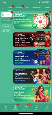 ZT777Game has simple type interface means on this application every feature is made simply and new users can also navigate easily on the platform. Moreover, easypaisa, jazzcash and many other type of main wallets are available on this application through which profits or winnings from this application can be withdraw easily and the same for deposit, bank accounts are also available for the transactions. Try DK999 Game for more fun and earnings.